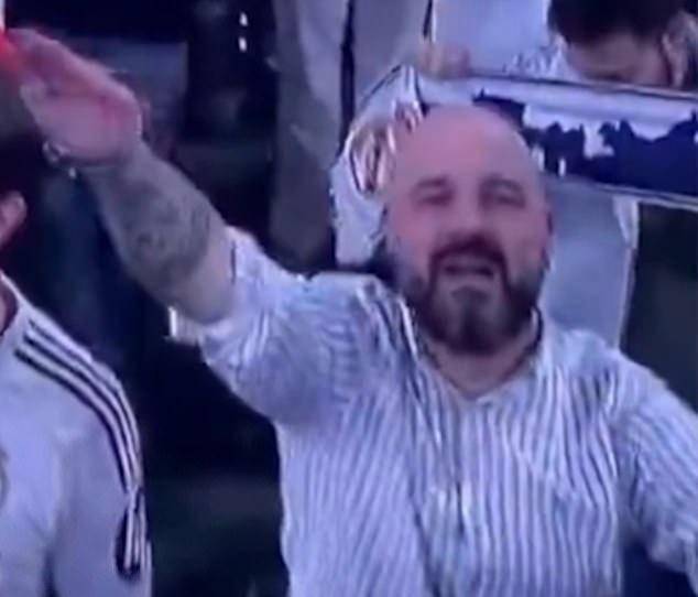 一名被拍到在皇马对阵本菲卡的欧冠赛前做出纳粹礼手势的皇家马德里球迷,目前正接受调查。